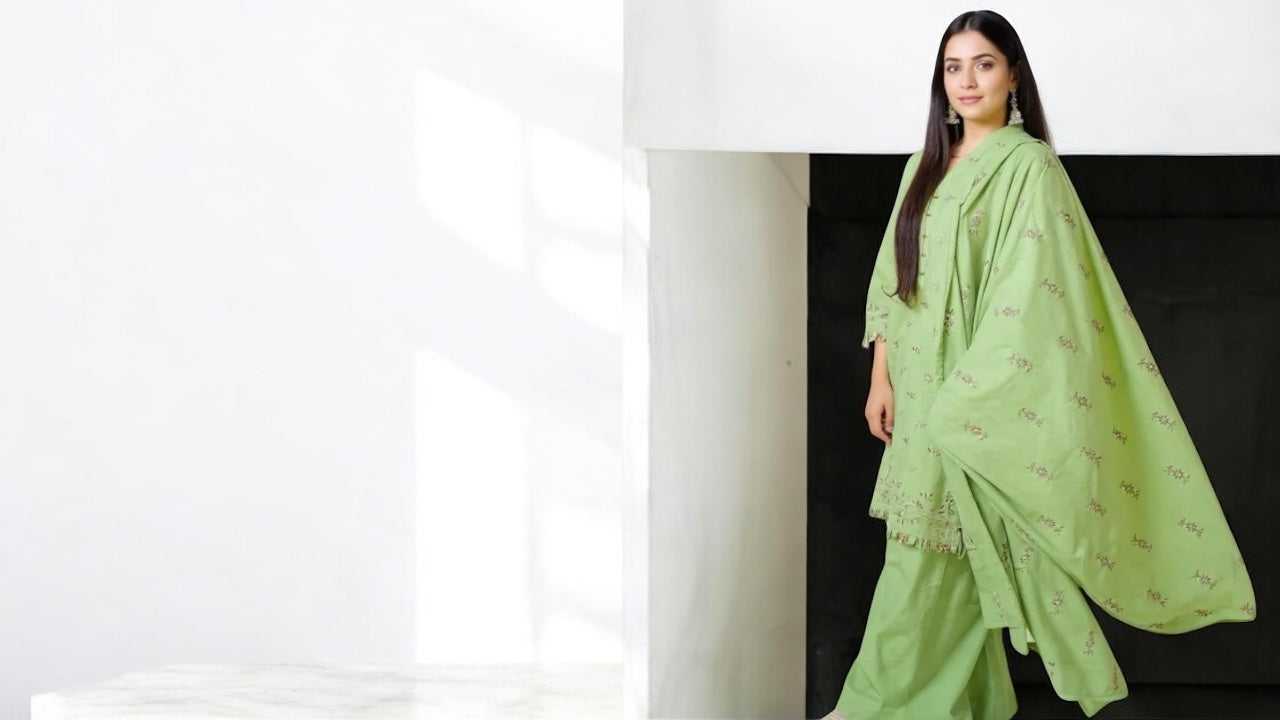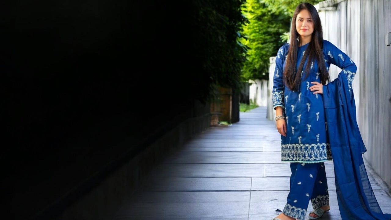 Experience the art of elegance with Spezala's latest embroidered sets! This exquisite embroidered dresses showcases intricate white thread work on premium fabric,